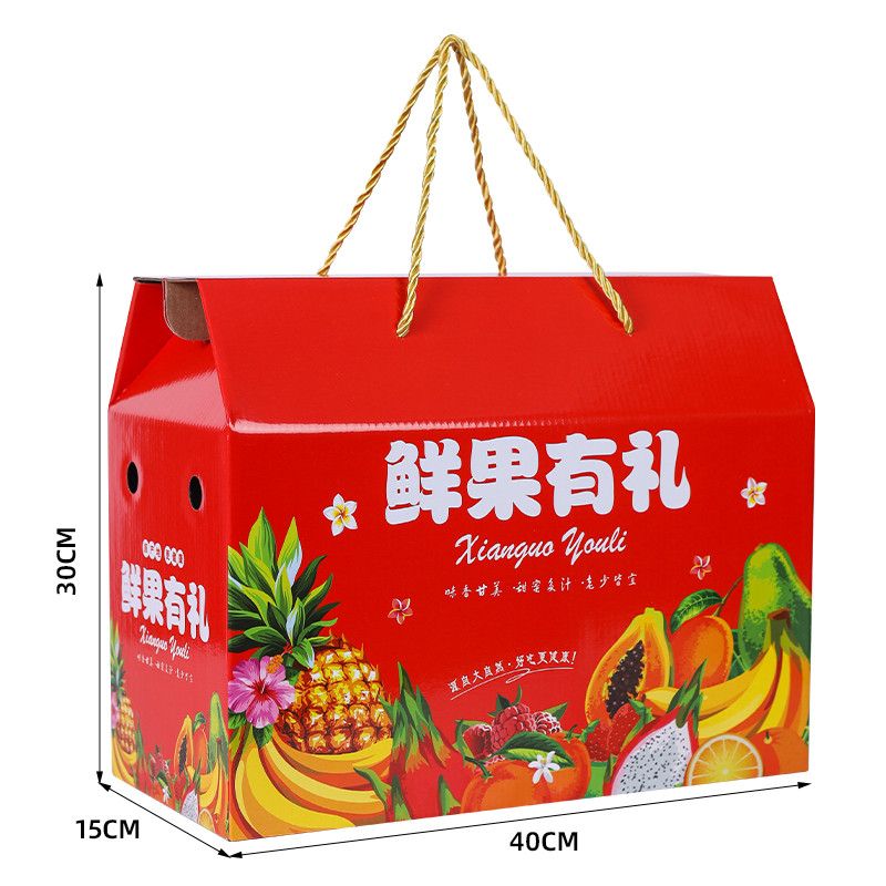 通用水果礼盒包装盒空盒橙子桃子苹果葡萄樱桃礼品盒批发定制 【特大号】红色有礼10-15斤10个加粗绳