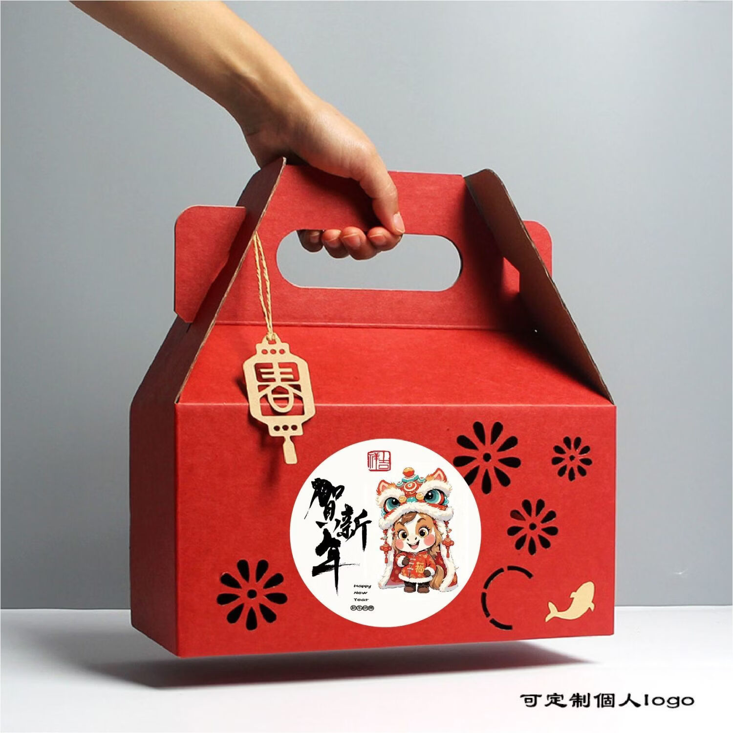 咏幻通用新年礼盒春节包装盒创意高档手提款节日礼品盒空盒子定制批发 八宝盒红色备注贴纸10个装 大号