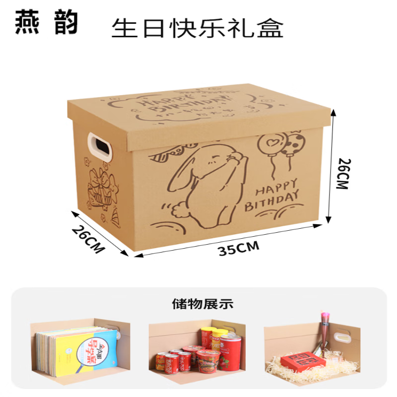 山头林村礼物盒空盒子高级感大号生日礼盒包装盒超大零食子礼物盒送男生 生日快乐(35*26*26) 兔年生日 礼盒