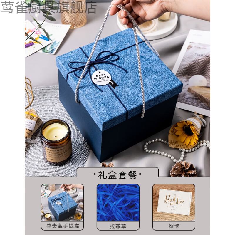 周末岛生日礼盒礼品盒包装盒礼物盒感创意空盒子送男生手提绳礼物盒 尊贵蓝(送拉菲草+贺卡) 小号18*18*13.5cm(可放围巾 面膜