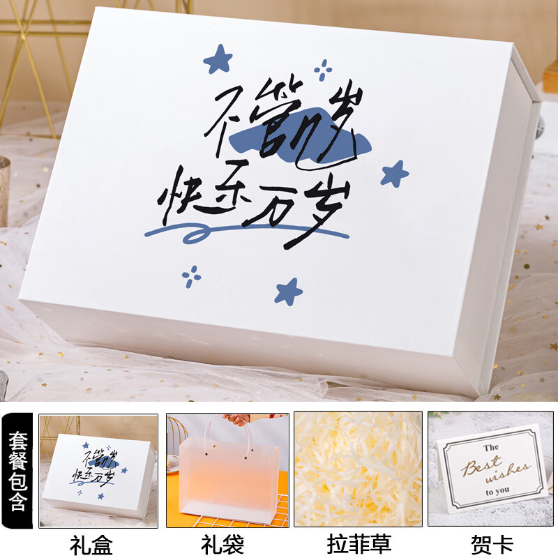 诗迦努礼品盒空盒礼物盒送男生女生礼盒空盒子大号生日感精美包装盒轻奢 礼盒+拉菲草 33*24*9.5