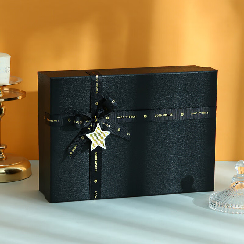 礼物盒送男生礼物包装盒礼品盒生日盒子黑色高级感教师节礼盒空盒 黑色星星20*18*8cm礼盒+礼袋