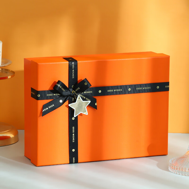 礼物盒空盒黑色礼盒包装盒子礼品盒大号精致女生日礼物男生 8115橙色礼盒(送贺卡) 尺寸:15*11*7.1cm