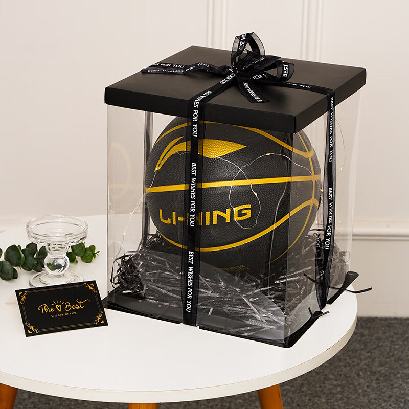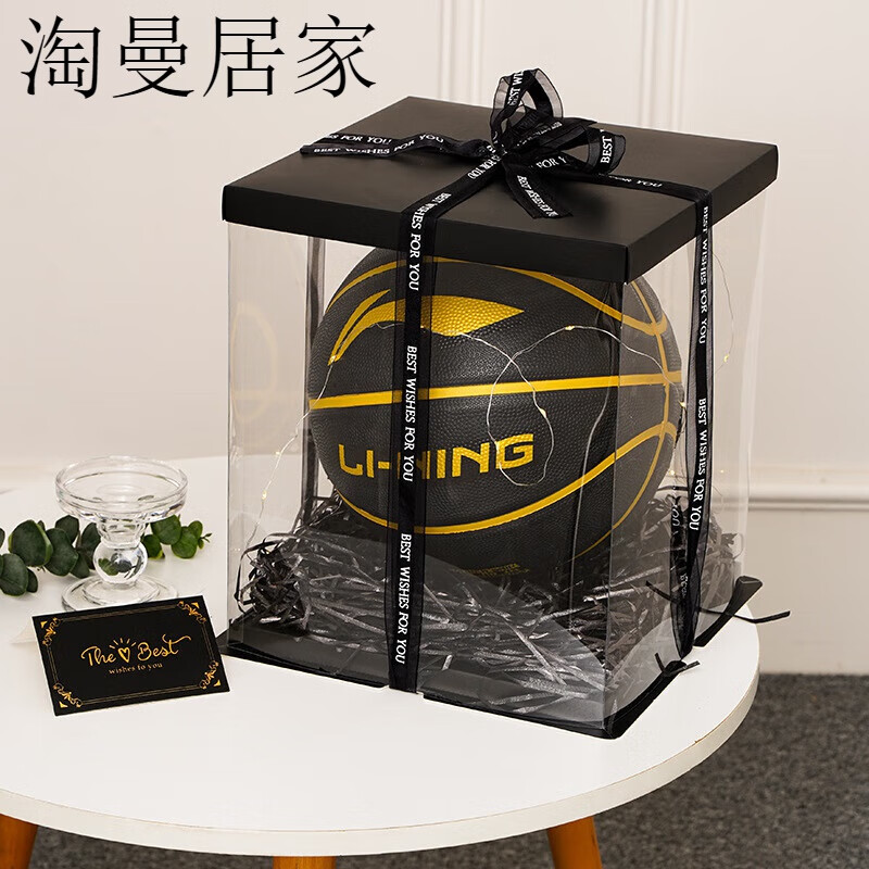 篮球礼盒空盒ins风精美生日送男生篮球包装盒子大号足球收纳盒 礼盒丝带球托拉菲草氛围灯 黑色款