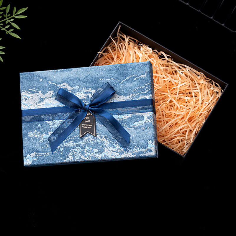 维诺亚礼盒空盒大号男生款生日礼物包装盒小号口红香水围巾仪式感礼品盒 蓝采雅纹(送拉菲草.贺卡) 小号11*8*5.5CM