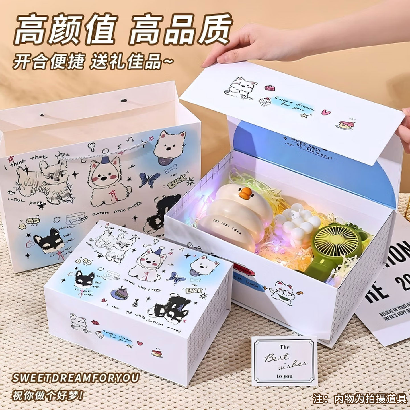 静闲居礼盒空盒礼物盒新年礼物盒生日礼品包装盒大号高级感送女生伴手礼 双开门礼盒+礼袋+拉菲草+贺卡