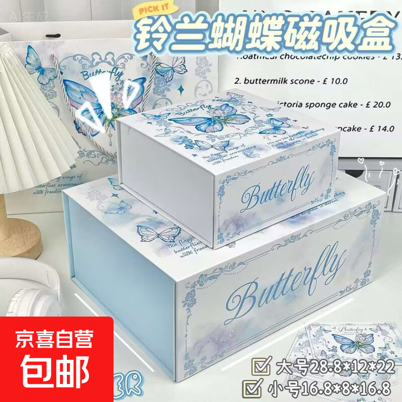 铃兰蝴蝶手提袋磁吸礼品盒生日节日新年礼盒空盒精美加厚硬包装盒 大号磁吸盒+拉菲草3包+礼品袋