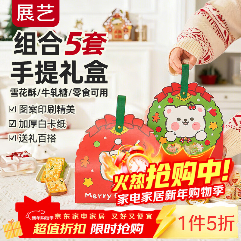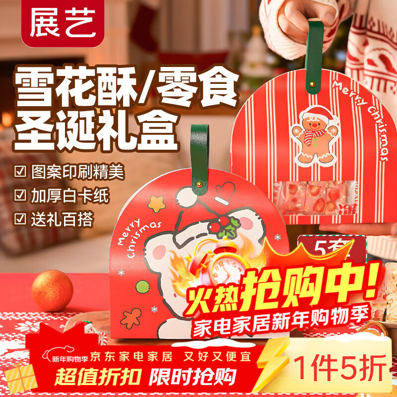 展艺包装礼盒5套 糖果饼干曲奇溶豆雪花酥手提袋伴手礼物袋新年姜饼人