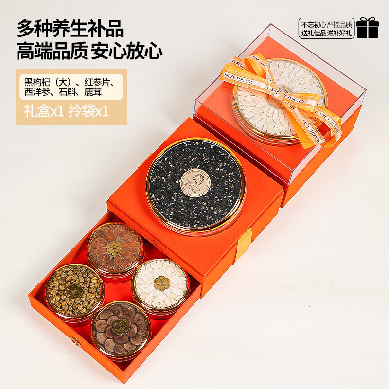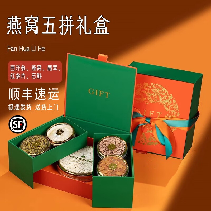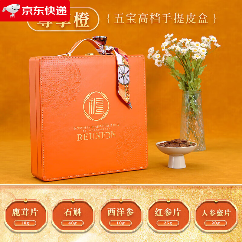中秋节礼品送礼礼盒送长辈父母走亲戚企业团购送客户老人滋补品给爸妈见面伴手礼见家长丈母娘岳父实用 爱马仕橙五拼礼盒【鹿茸.石斛.西洋参.红参.蜜片】