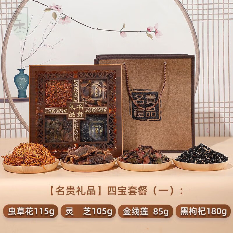 食芳溢中秋送长辈的实用礼品送礼送老人走亲戚礼盒送妈妈婆婆见面礼 名贵木盒四宝礼盒一