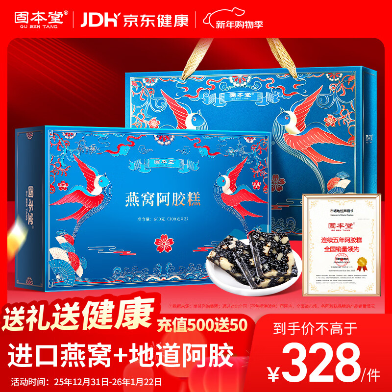 固本堂燕窝阿胶糕礼盒600g送礼长辈父母家长实用礼盒送丈母娘礼物走亲戚