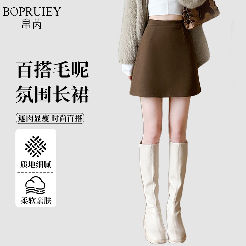 帛芮毛呢半身裙子女秋冬季2025新款包臀裙通勤风短裙防走光a字裙秋装