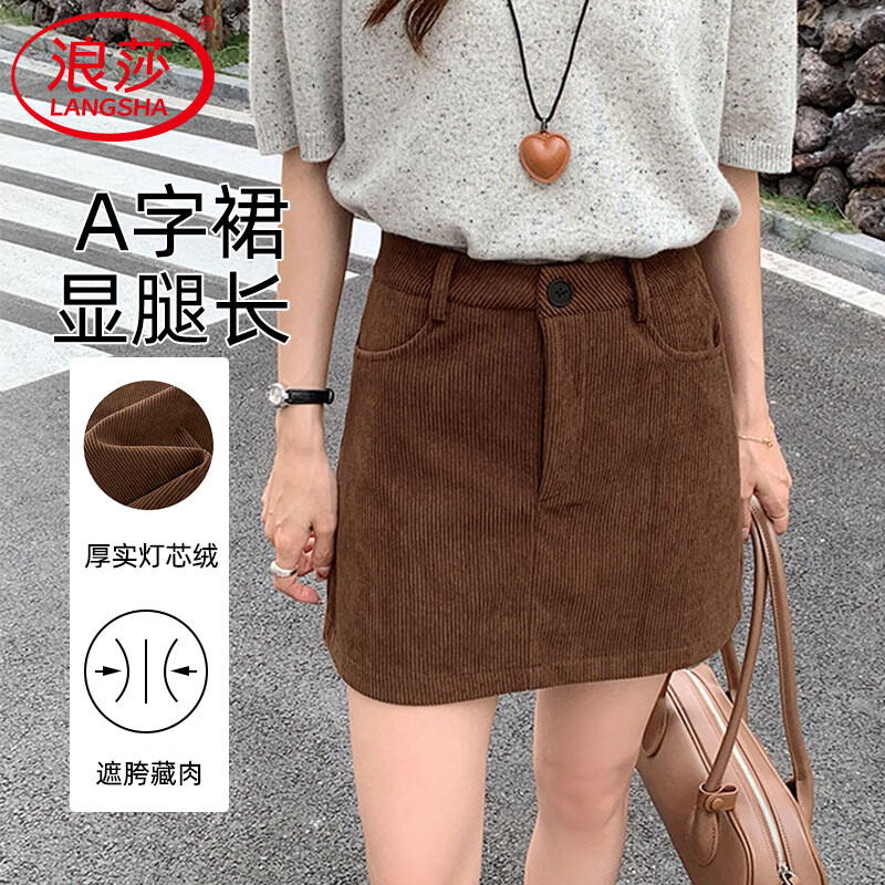 浪莎复古灯芯绒包臀短裙女秋冬季2025新款高级感小个子高腰a字半身裙 咖啡色 M 【适合95-110斤】