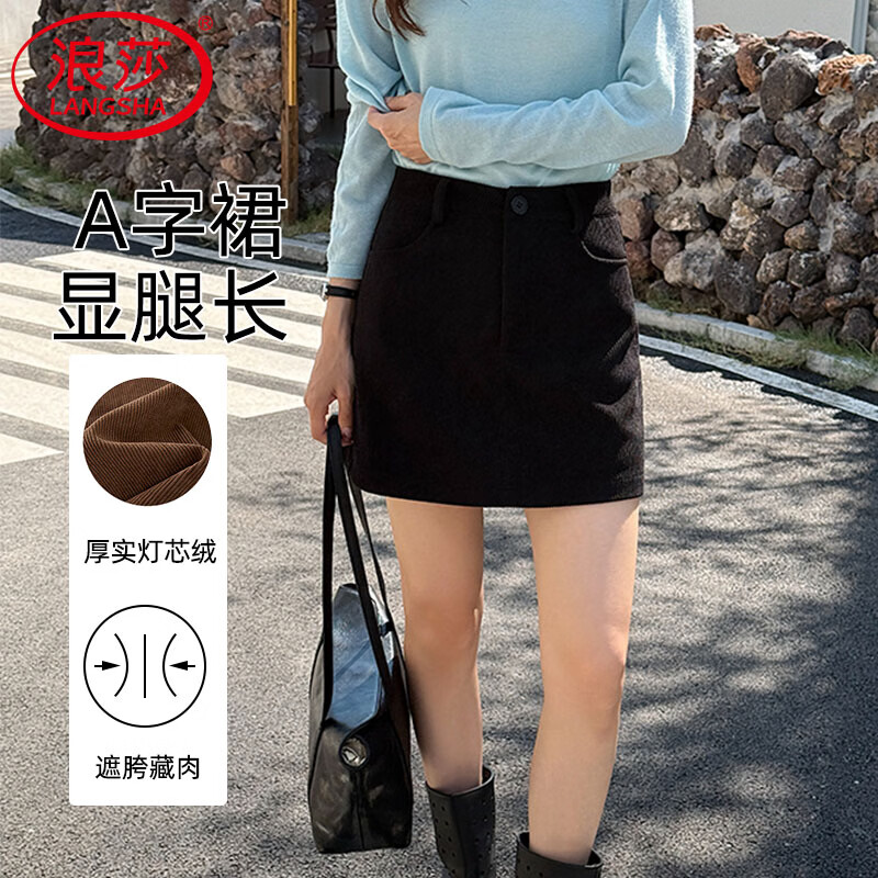 浪莎复古灯芯绒包臀短裙女秋冬季2025新款高级感小个子高腰a字半身裙 黑色 M 【适合95-110斤】