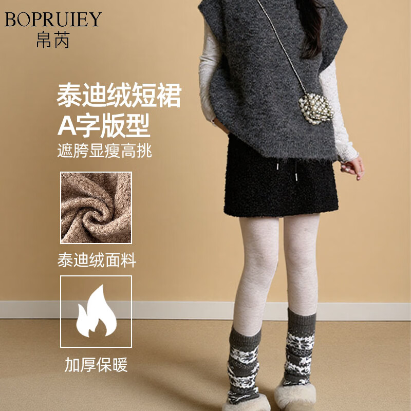 帛芮毛绒绒短裙2025年新款泰迪绒半身裙秋冬季裙子小个子包臀裙a字裙