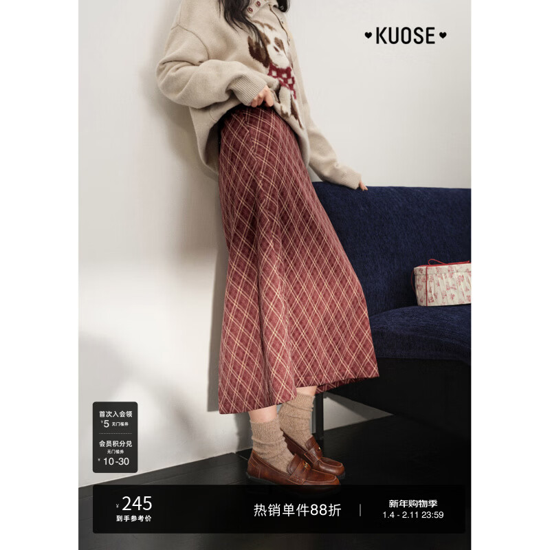 阔色桔红色复古格子裙a字裙长半裙2025秋冬季搭配女高腰半身裙新 桔红色 1月19日发 L