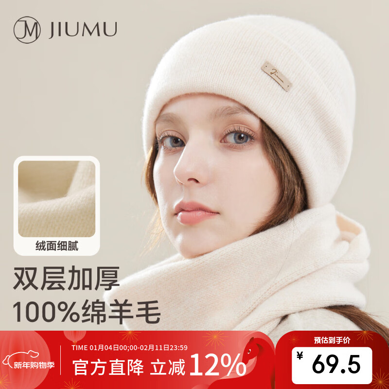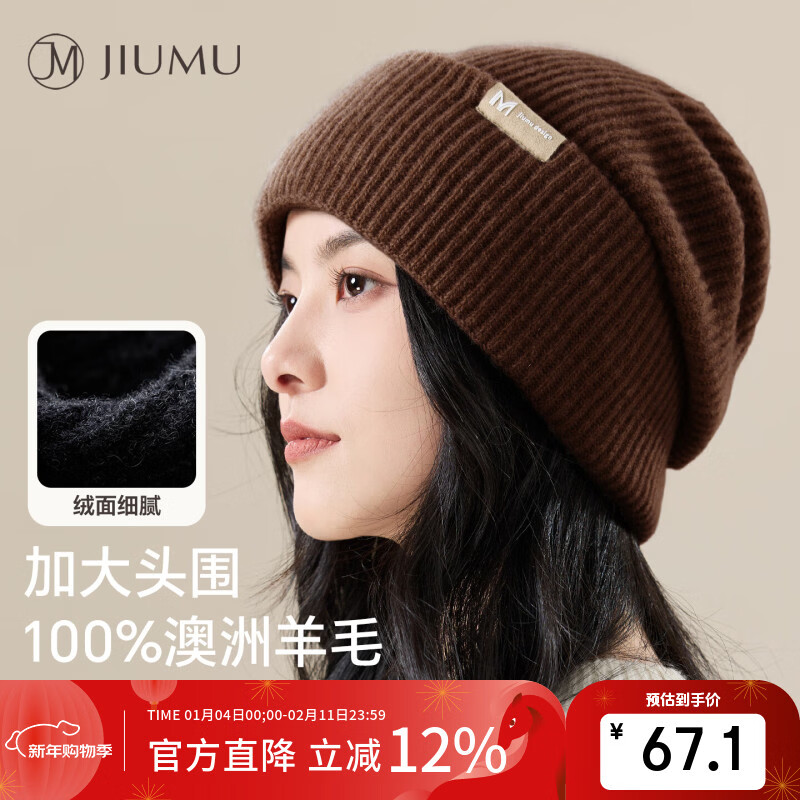 玖慕(JIUMU)纯羊毛保暖毛线帽秋冬季针织帽冷帽冬帽月子帽冬天户外防寒帽子女
