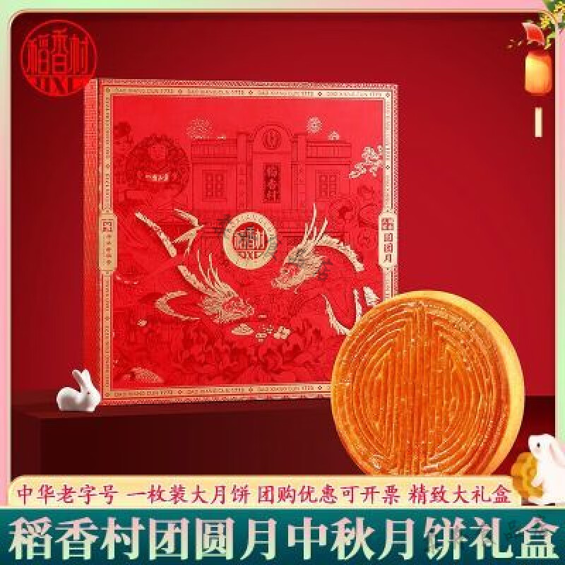 北京稻香村月饼蛋月烧送礼稻香村蛋月烧大月饼礼盒一个装传统手工网红山西晋 稻香村团圆月蛋月烧月饼礼盒500克