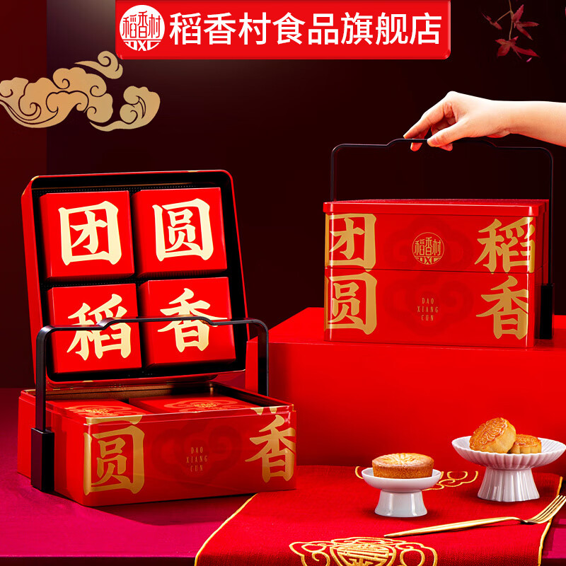 北京稻香村【累计1019.7万+件】稻香村月饼礼盒团圆稻香双层铁盒900g枣泥五 团圆稻香900g【双层铁盒】9味18