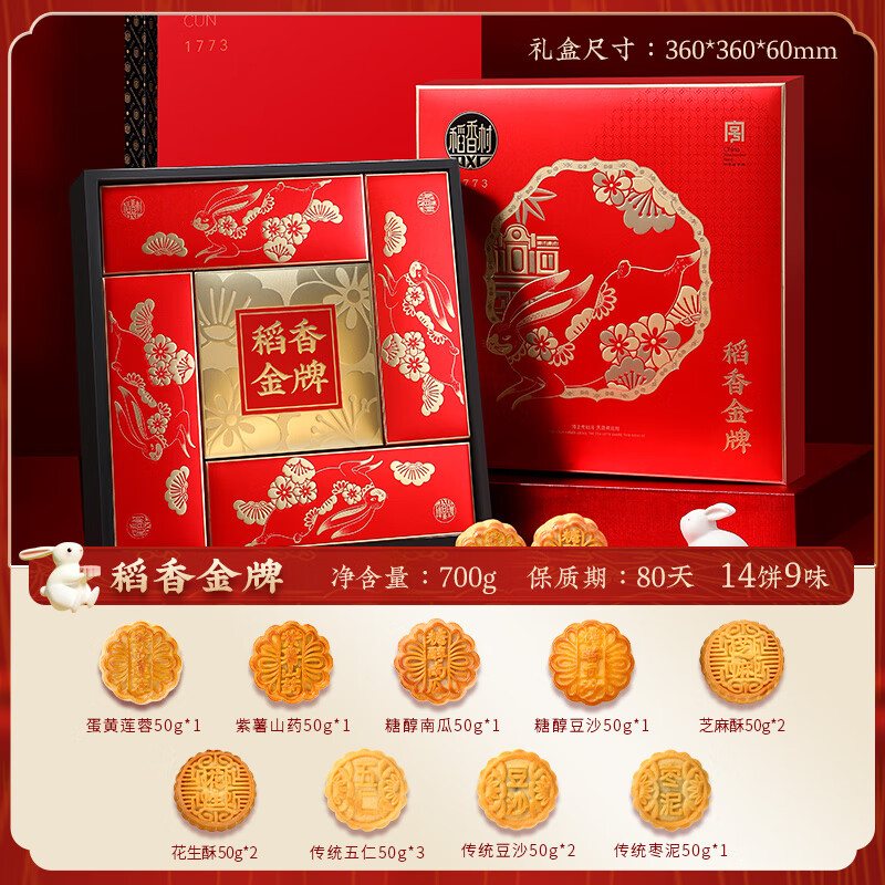 稻香村(DXC)买送稻香村月饼礼盒蛋黄莲蓉老式五仁豆沙中秋送礼团购 买带700g稻香礼盒风尚款-带礼袋