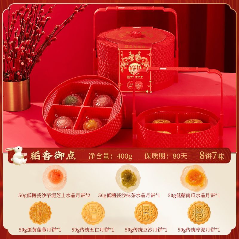 北京稻香村月饼礼盒稻香御点双层提篮礼盒400g蛋黄莲蓉中秋节送礼团购 稻香村(8饼7味)双层提篮月饼礼盒