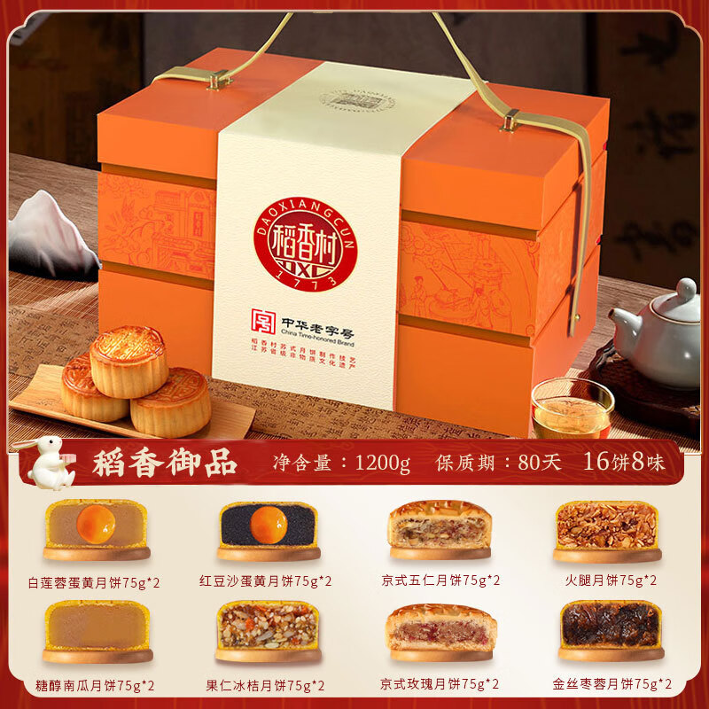 稻香村月饼礼盒稻香御品1200g蛋黄老式月饼传统小吃中秋过 稻香村-稻香御品1200g(16饼)