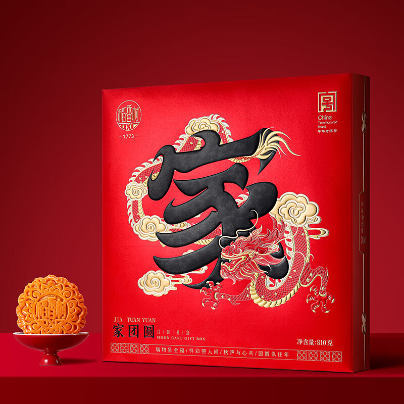 稻香村(DXC)中秋月饼礼盒组合 家团圆810g+礼袋