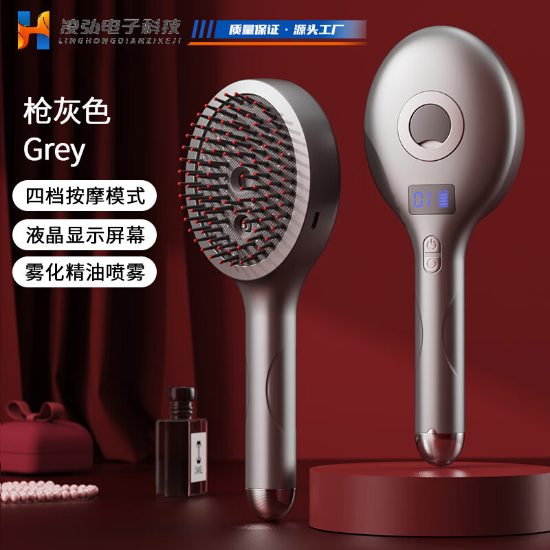 山头林村臭氧电流梳按摩梳电动梳精油雾养护梳红光梳健发导入上药器导液 枪灰色款高频微震按摩+红光喷雾可加自用精油