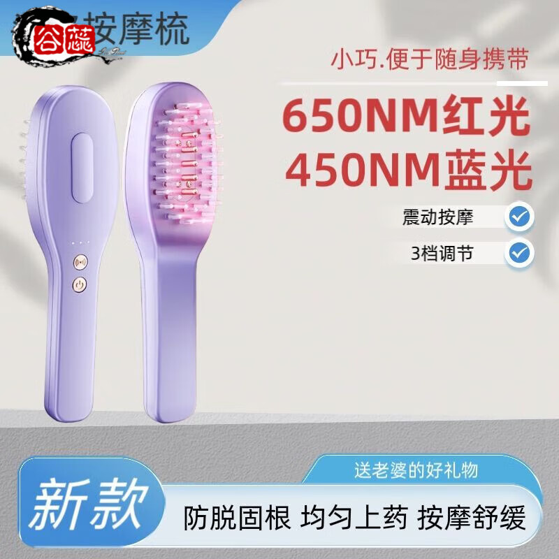 OVL红光按摩梳倍轻松平替蓬蓬梳头皮护理按摩梳红光头部健发梳米诺精华液上药导入器生发仪育发梳 【旗舰体验款-典雅紫】送1瓶固发精油+红蓝光疗