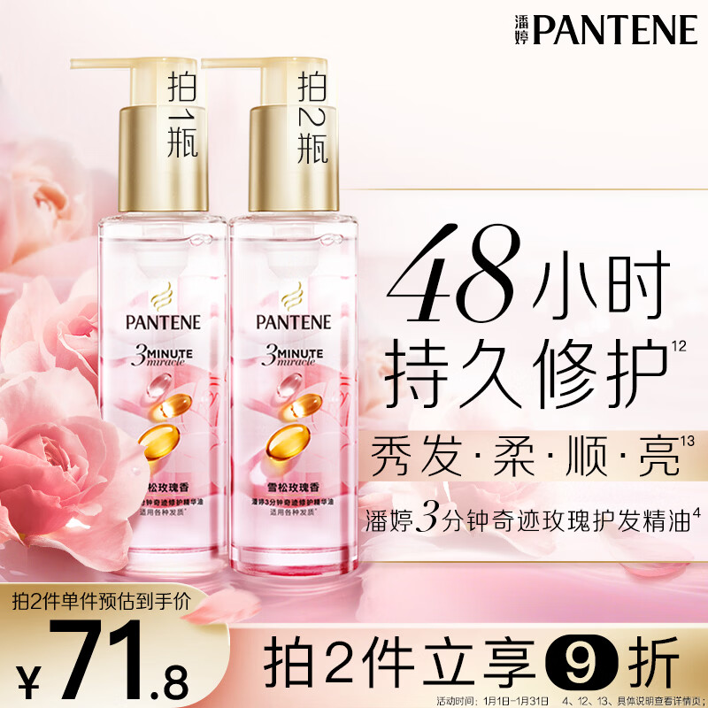 潘婷三分钟护发精油雪松玫瑰香3分钟奇迹三秒水感90ml修护干枯毛躁