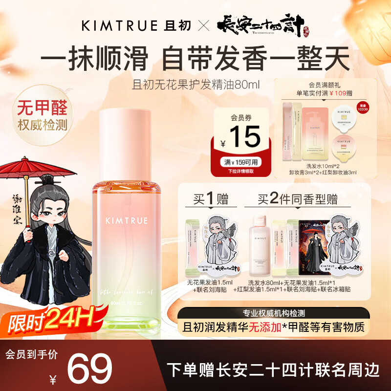 KIMTRUE且初护发精油 无花果香80ml 轻盈顺滑改善干枯毛躁清爽不油腻