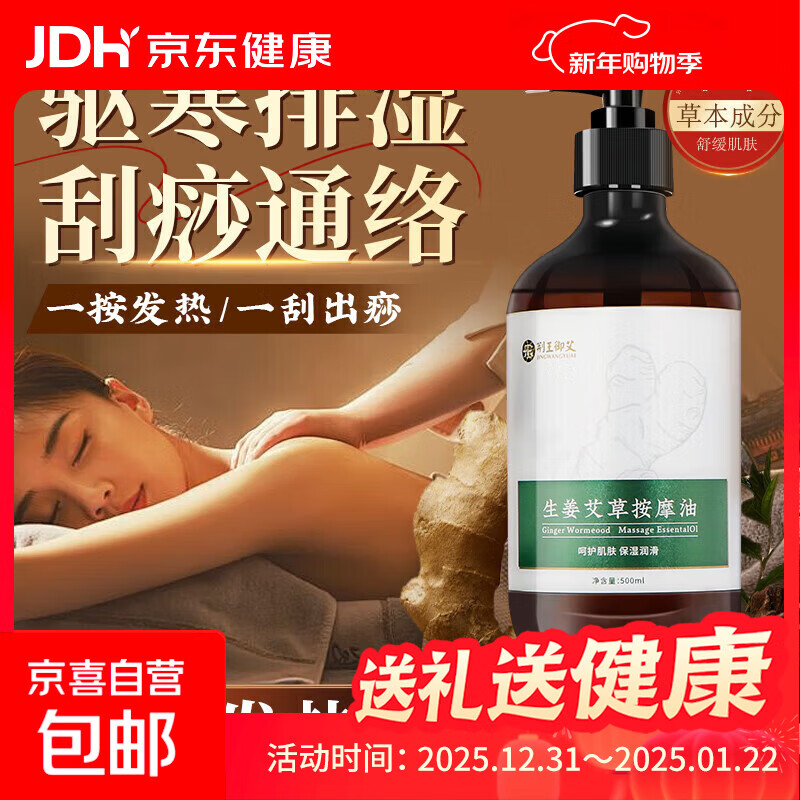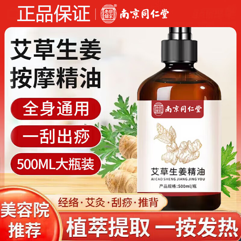 南京同仁堂艾草生姜按摩精油500ml全身刮痧通经络发热推拿油疏通排毒spa开背