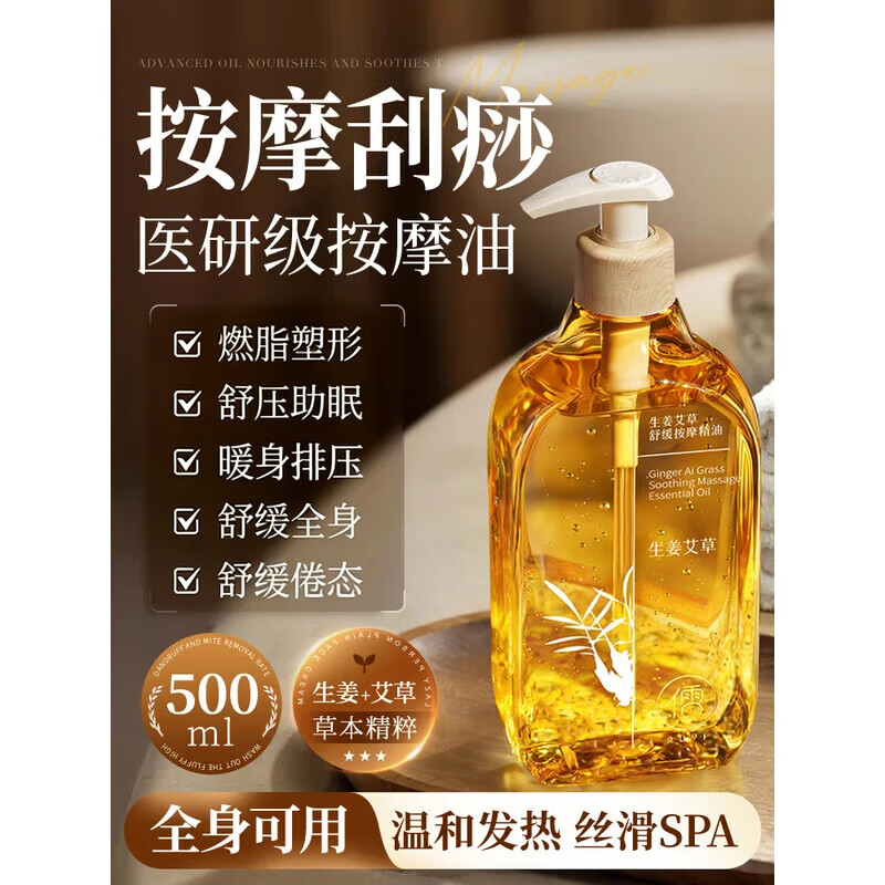 韩植皙按摩精油艾草生姜脸部面部全身通经络发热开背推拿刮痧油拔罐润滑 【院线专研】按摩精油600ml*1瓶