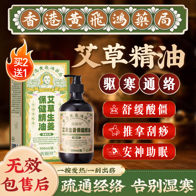 紫辛铺大药房生姜艾草按摩精油500ml 通经络全身排毒发热拔罐spa开背推拿刮痧
