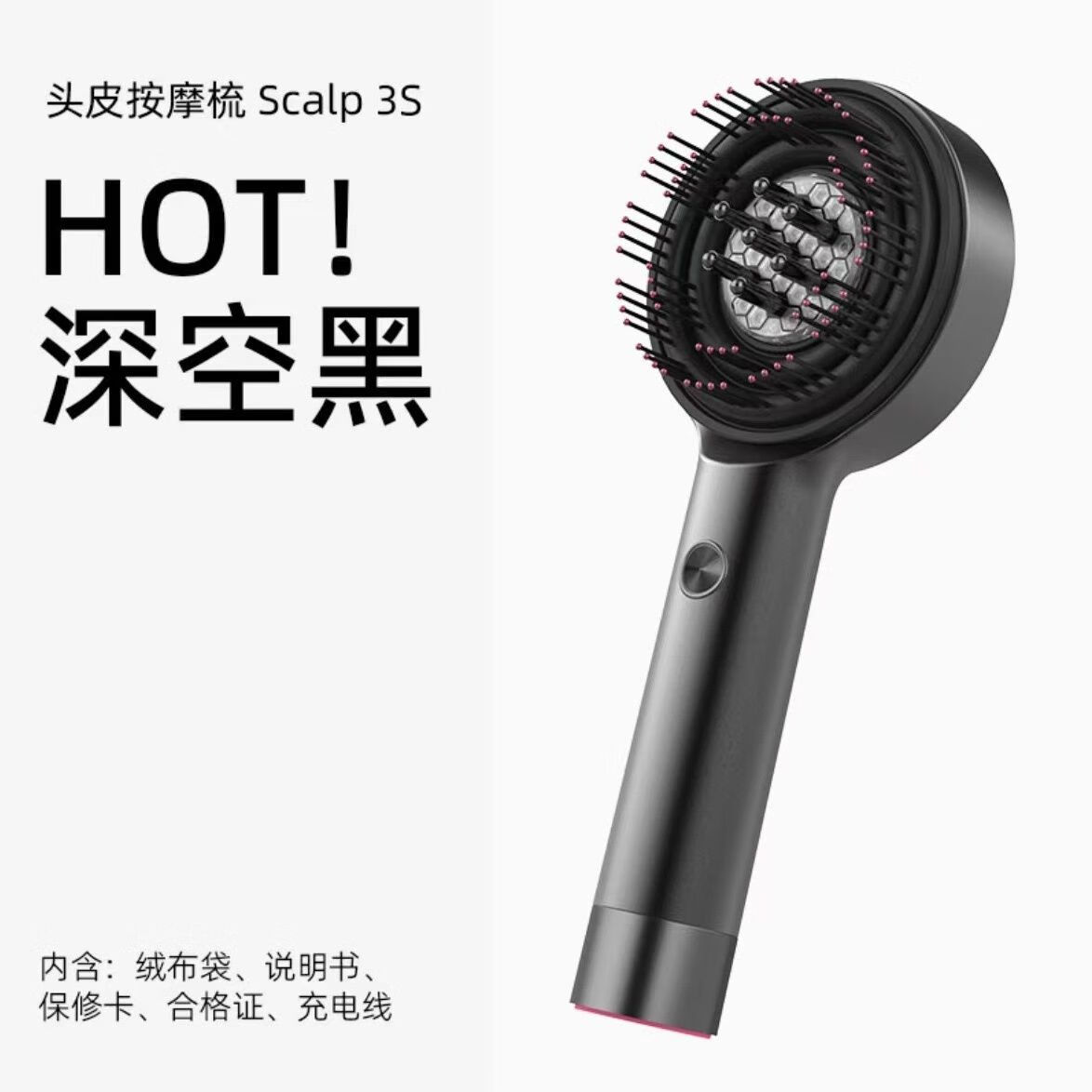 倍轻松Scalp3S头皮智能按摩梳 红光精油护发滋养护头按摩梳二代 【深空黑】Scalp3按摩梳一代