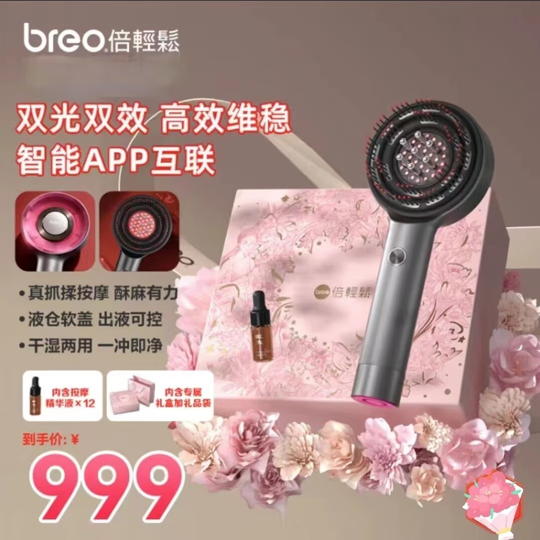 倍轻松/breo Scalp3S头皮智能按摩梳 红光精油护发滋养护头按摩梳二代 【礼盒款】Scalp 3s升级版二代