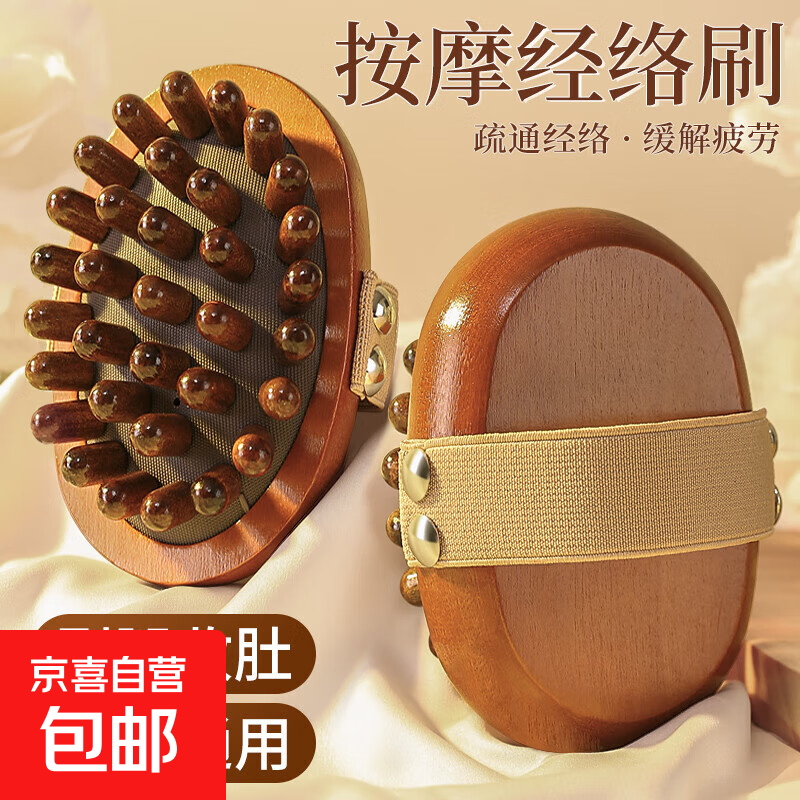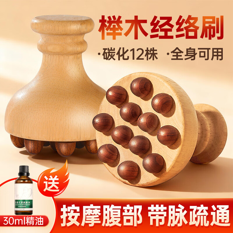 带脉经络刷全身通用按摩刷腹部刷肚子刷腹梳子按摩梳头部经络梳 棕色禾木经络刷1个+10毫升艾草精油