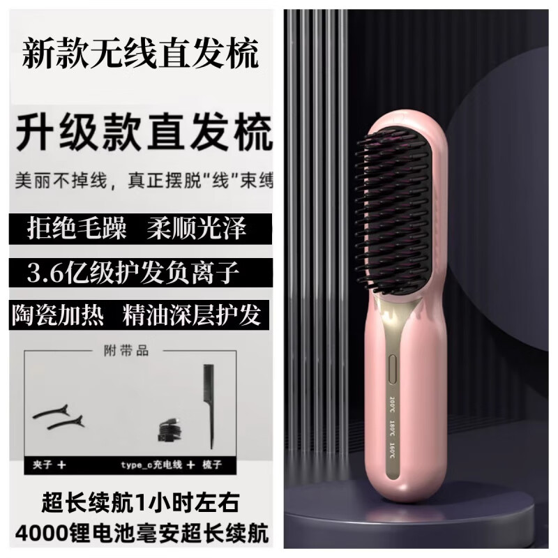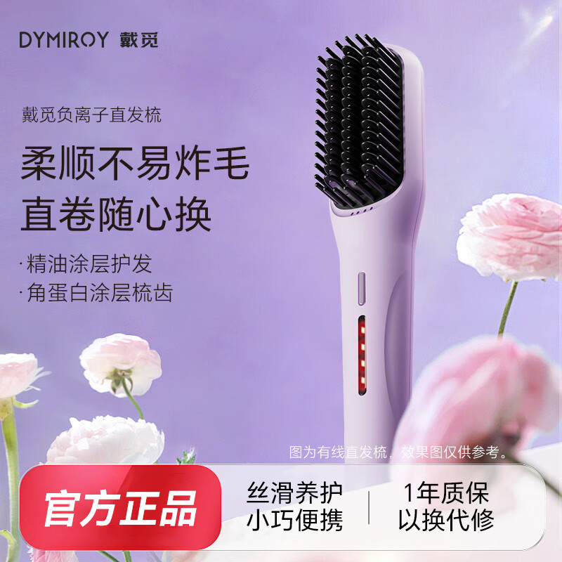DYMIROY 戴觅直发梳无线负离子拉直夹板内扣蓬松护发电动直板夹造型电梳子懒人卷发棒神器不伤发便携生日礼物女 升级款【三档温控丨精油层养护】