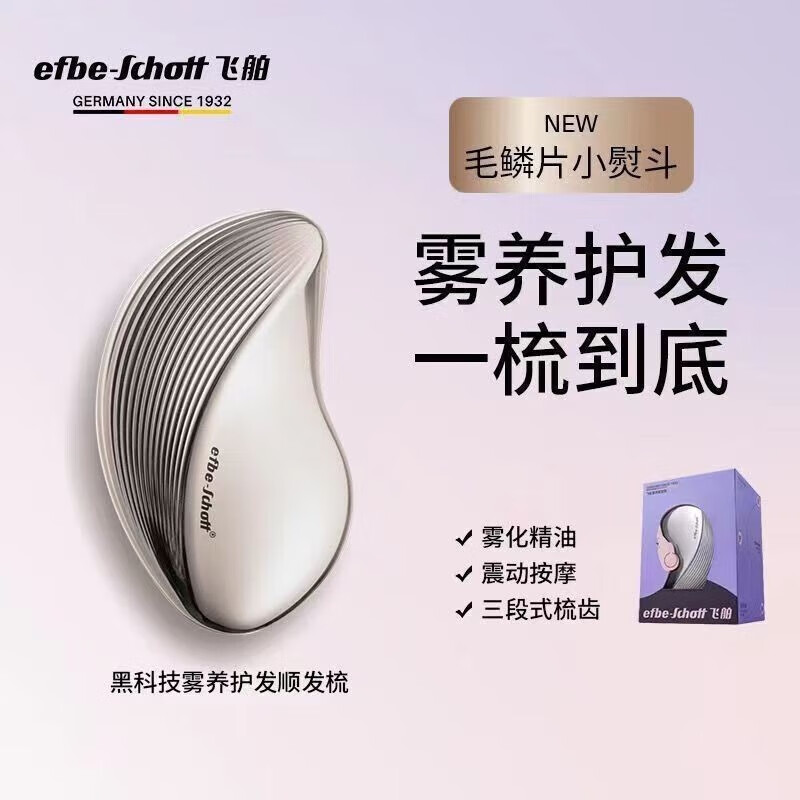 飞舶一顺到底精油护发仪顺发梳便携电动梳子头皮按摩 太空金2个梳齿板+3个精油蛋