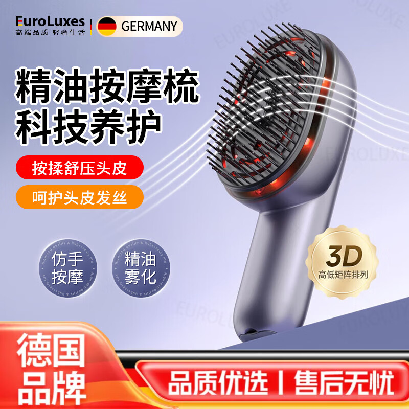 飒望德国梳子头部按摩梳头皮电动仪器按摩梳健发养发精油雾化梳新款 精油雾化红光按摩梳配精油弹可添加精油