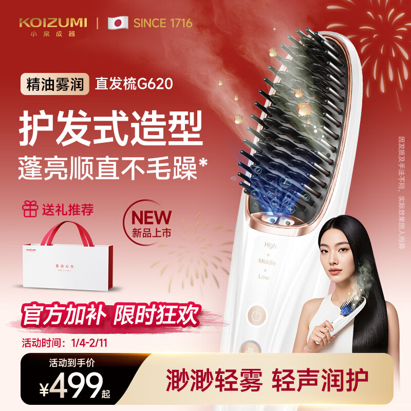 小泉成器(KOIZUMI)无线直发梳子精油雾润正负等离子护发不伤头发直发夹板卷发棒造型梳高颅顶蓬松顺发电动梳礼盒高端 【重磅新品】精油雾润直发梳