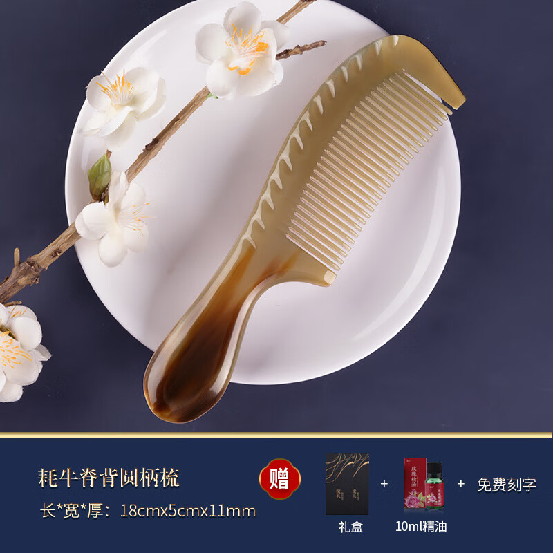 谭木匠天然牛角梳梳子女士家用男士专用静电防经络按摩梳 加厚牦牛角常用梳子(赠:礼盒+自封袋+精油)