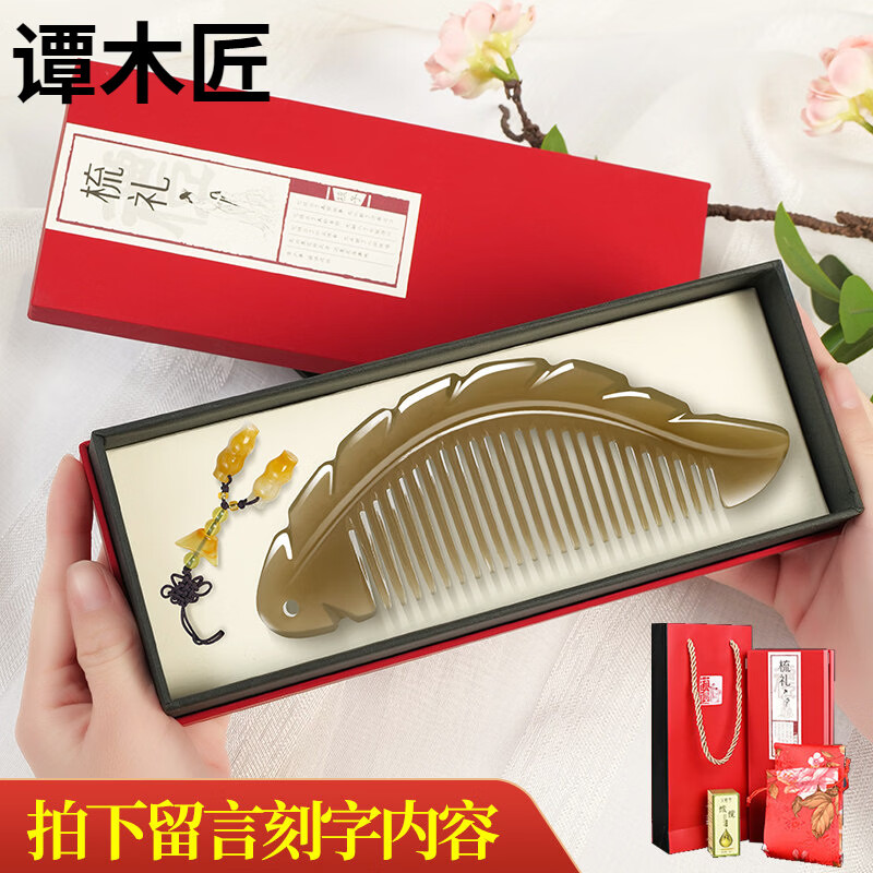 谭木匠母亲节礼物实用送妈妈牛角梳子女友老婆按摩梳礼盒装生日礼物 母亲节礼物【送礼盒+收纳袋+精油】