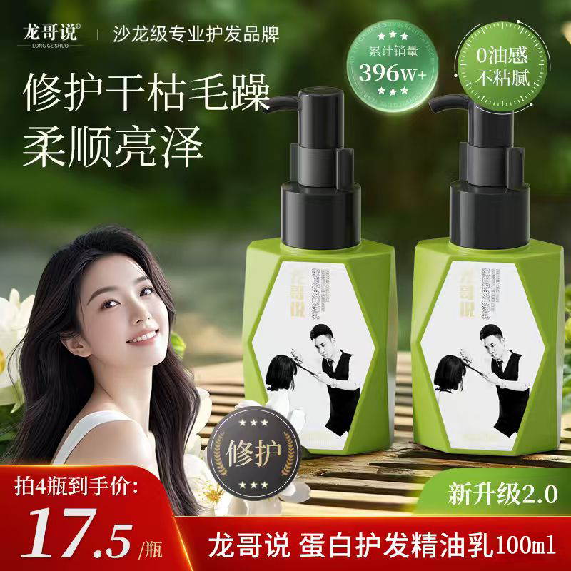 龙哥说蛋白护发精油乳护发精油女干枯毛躁头发持久留香100毫升大容量 修护 100ml*4瓶 +梳子1把