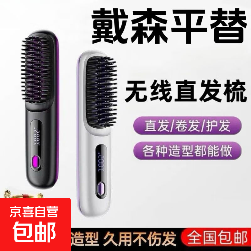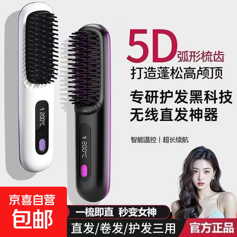 【戴森平替】无线直发梳电热梳子负离子不伤发直卷两用持久定型高颅顶蓬松神器 黑色【负离子+3档液晶控温+精油涂层+柔顺护发】