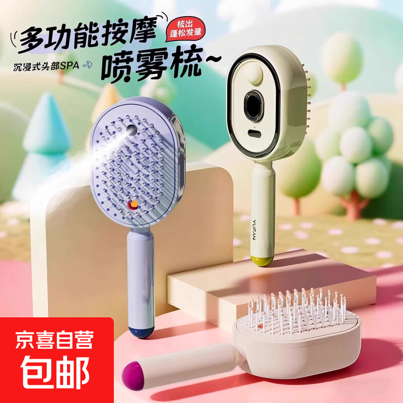 电动喷雾按摩梳女士专用精油雾化护发自清洁缠发可伸缩梳气垫梳子 紫色【1个装】电动喷雾按摩梳