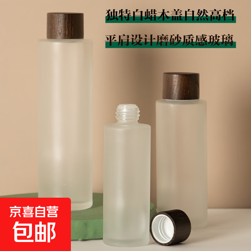 白蜡木盖平肩磨砂玻璃精油瓶纯露爽肤水化妆水分装瓶旅行分装空瓶 100ml