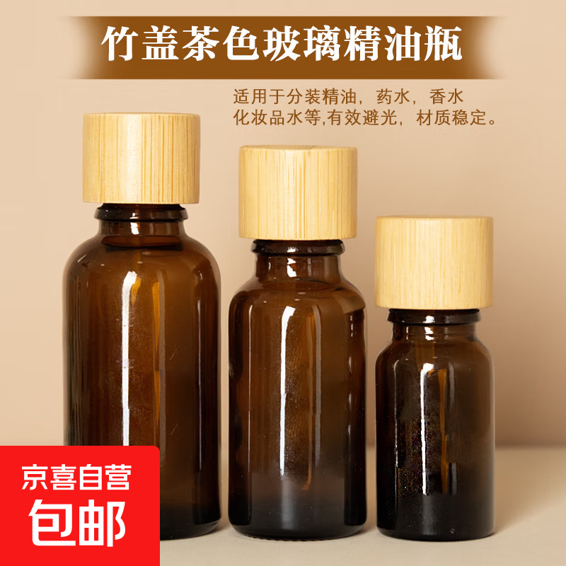 竹木盖高档棕色茶色玻璃滴塞精油瓶避光分装瓶化妆品精华滴空瓶子 15ml