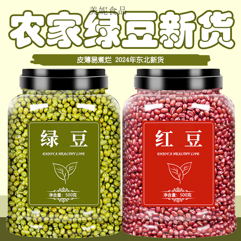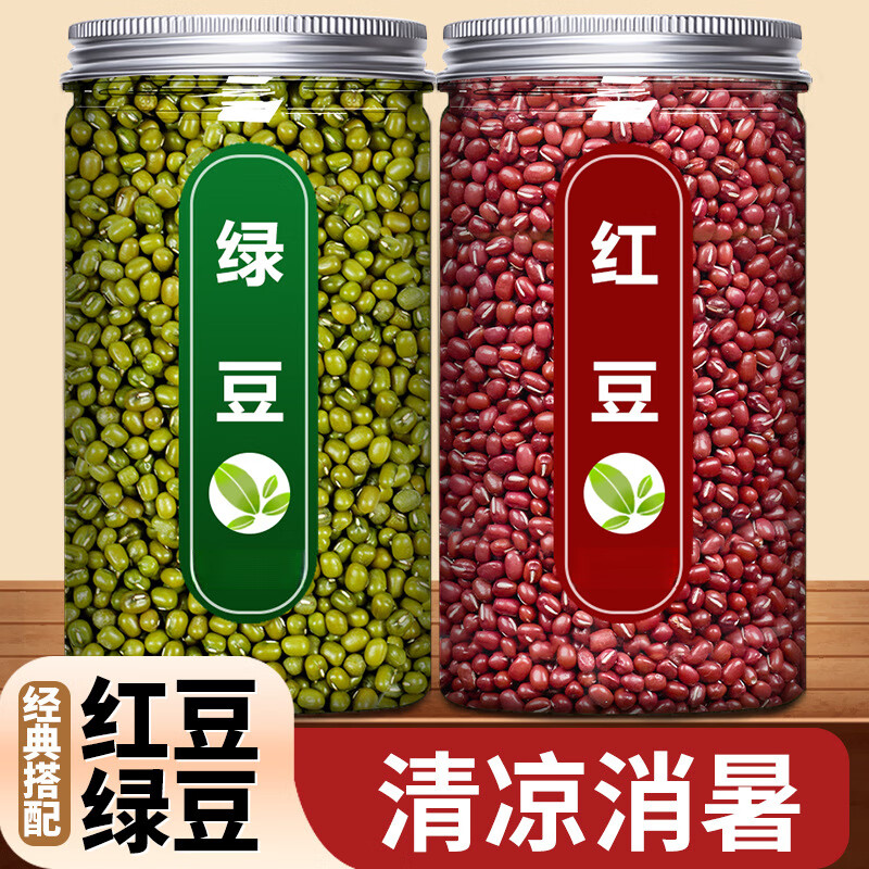 东北农家优质红豆绿豆组合新货官方旗舰店非去皮绿豆桶散装批发 绿豆500g+红豆500g
