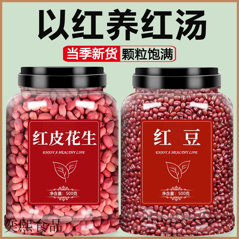红豆花生米红皮官方旗舰店2025新货新鲜生红衣五红汤小粒K 【大罐】【2罐】红豆(500g)+红皮花生(500